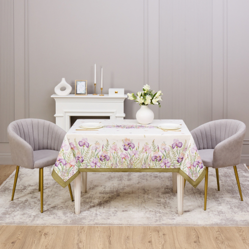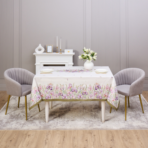 СКАТЕРТЬ "ИРИСЫ" 140Х180СМ ,БЕЛЫЙ, 100% ХЛОПОК,ТВИЛ ПРОПИТКА