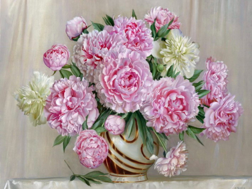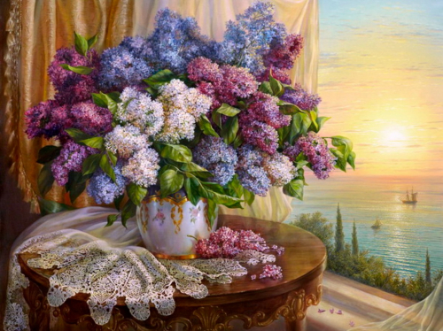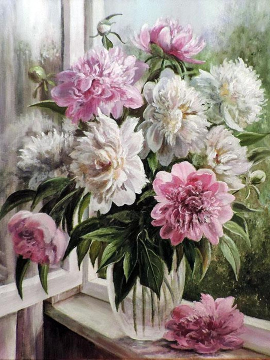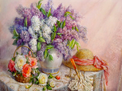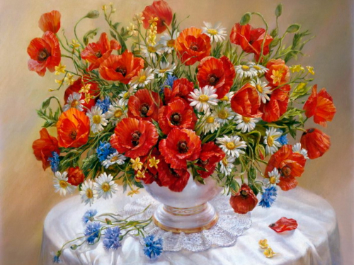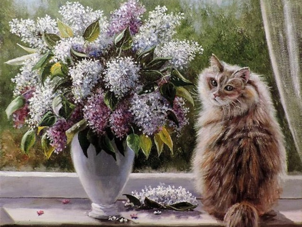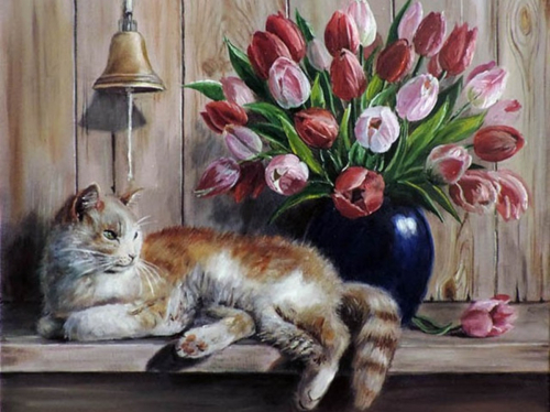Вышивка крестиком 40х50см, Кот и тюльпаны