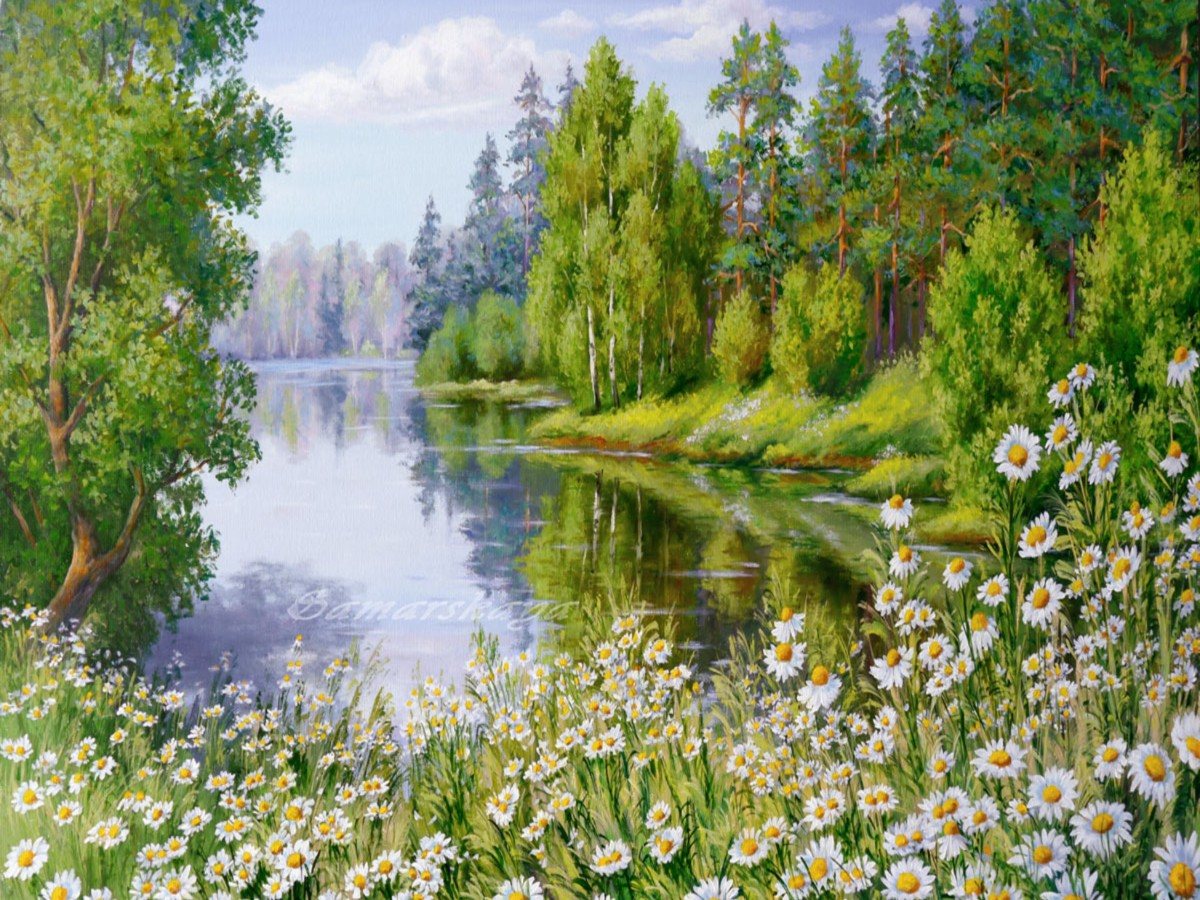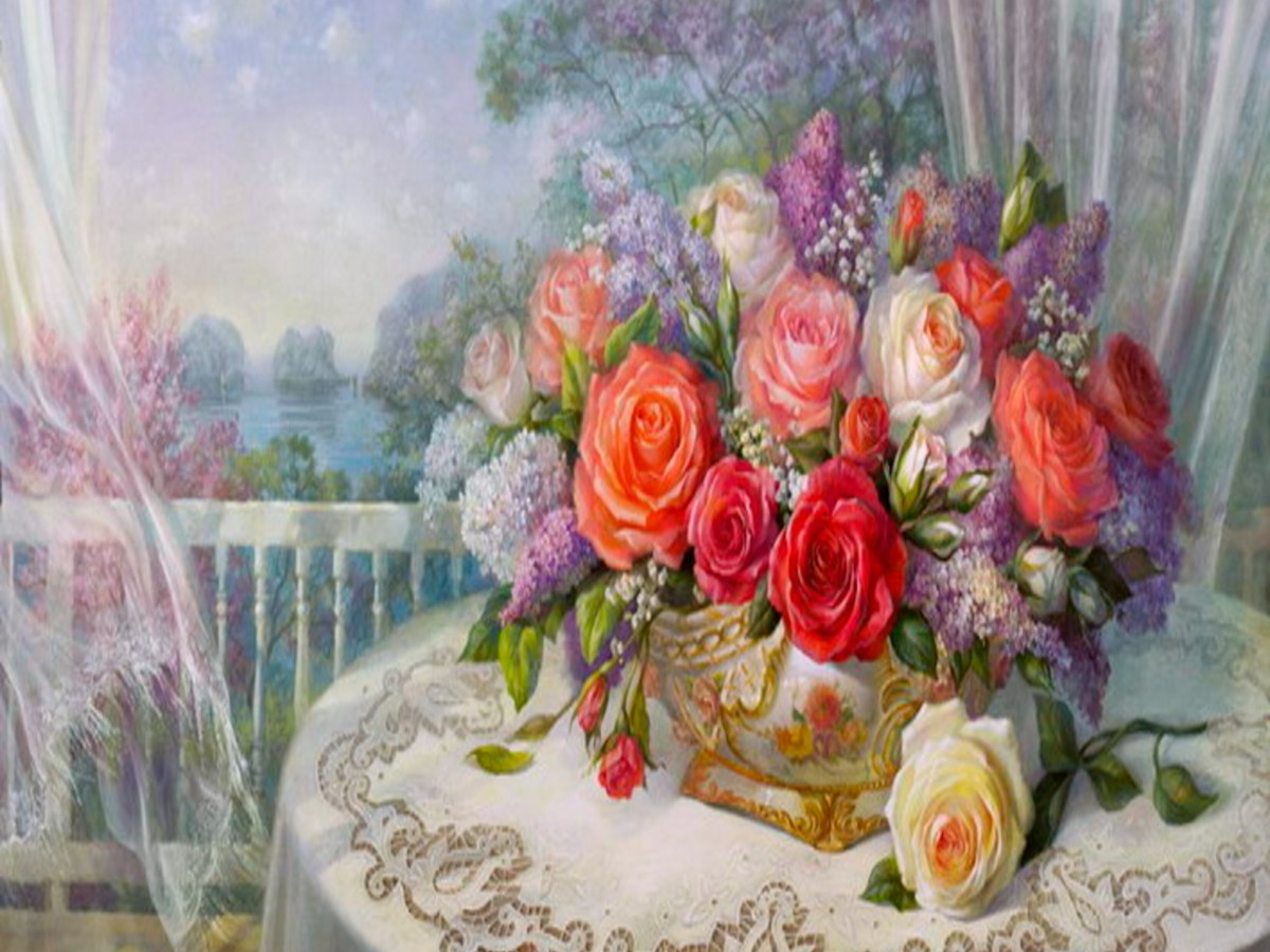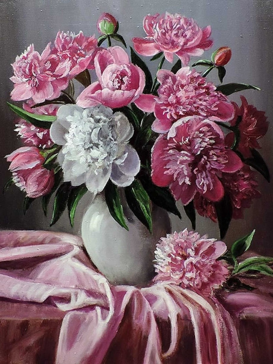Вышивка крестиком 40х50см, Кот и тюльпаны