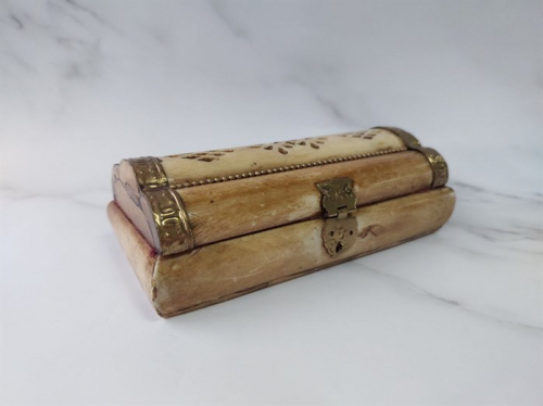 Костяная старинная шкатулка для любых видов бахура, светлая с медной отделкой