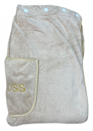 Сауна мужская микрофибра с полотенцем р-р 35х75 998 - 203 BOSS 2 пр - бежевый