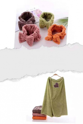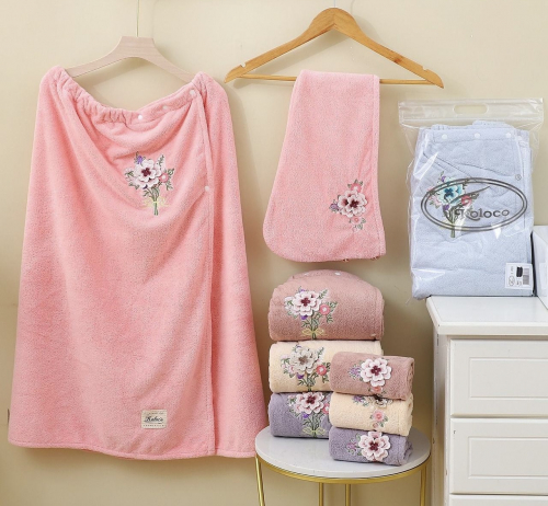 Сауна женская микрофибра 98 - 723 БУКЕТИК 2 пр юбка и чалма - пудра
