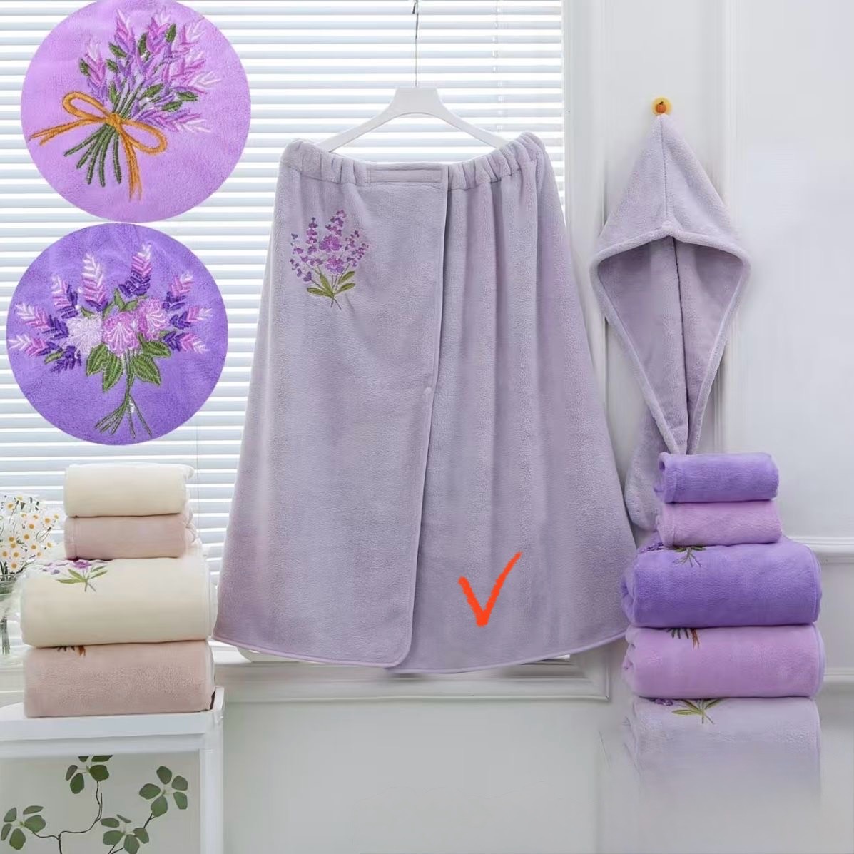 Сауна женская микрофибра 98 - 723 БУКЕТИК 2 пр юбка и чалма - сиреневая дымка