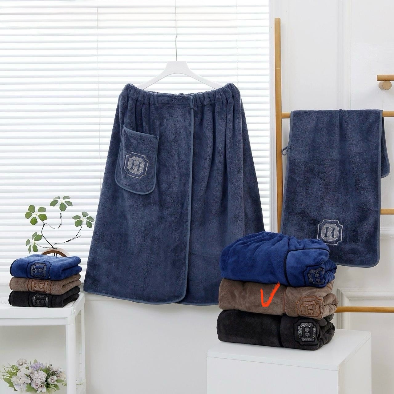 Сауна мужская микрофибра 7540236 НАШИВКА Н 2 пр юбка и полотенце 35х75 - темно - серый