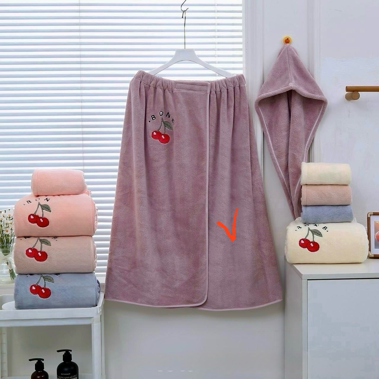 Сауна женская микрофибра 7540275 ВИШЕНКИ 2 пр юбка и чалма - бежевый