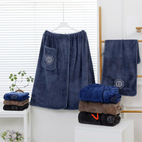 Сауна мужская микрофибра 7540236 НАШИВКА Н 2 пр юбка и полотенце 35х75 - черный
