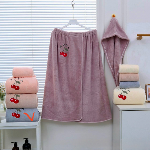 Сауна женская микрофибра 7540275 ВИШЕНКИ 2 пр юбка и чалма - персиковый