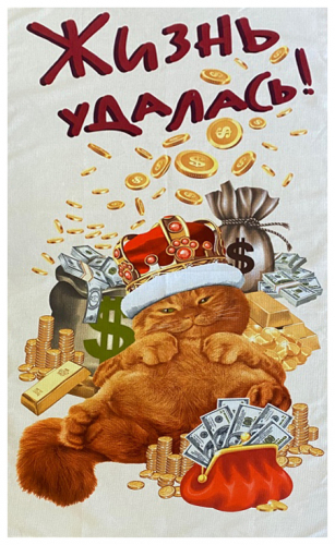Полотенце вафельное банное ДЕНЕЖНЫЙ КОТ р-р 80х150