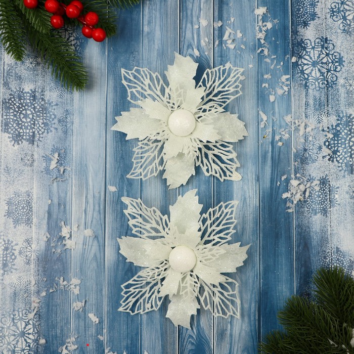 Ёлочные игрушки 2 шт. «Зимнее волшебство. Снежный цветок» пластик, 15 см, белый