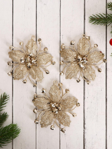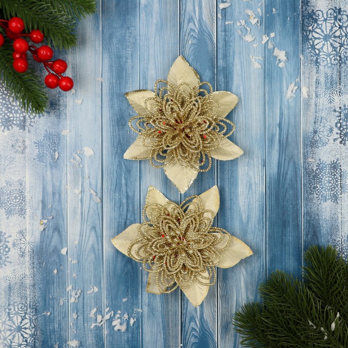 Ёлочные игрушки 2 шт. «Зимнее волшебство. Драгоценный цветок» пластик, ажурный, 12 см, золото