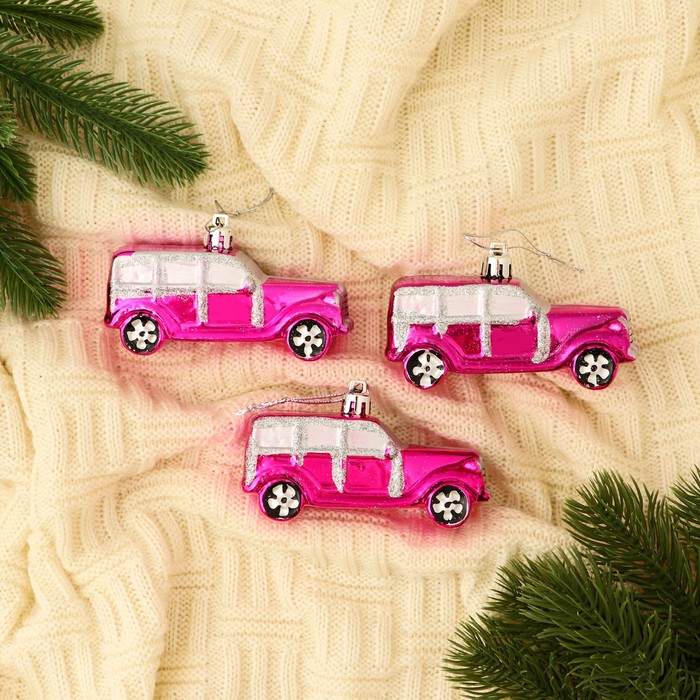 Ёлочные игрушки 3 шт., «Зимнее волшебство, Модельки» пластик, 9×3.5 см, розовый