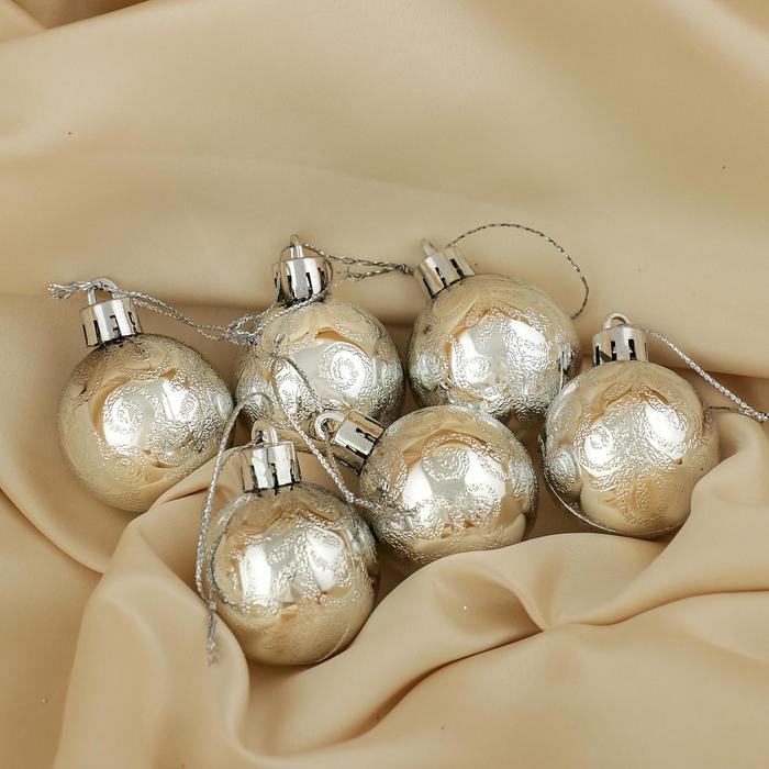 Новогодние шары ёлочные, d=6 см, 6 шт., шампань