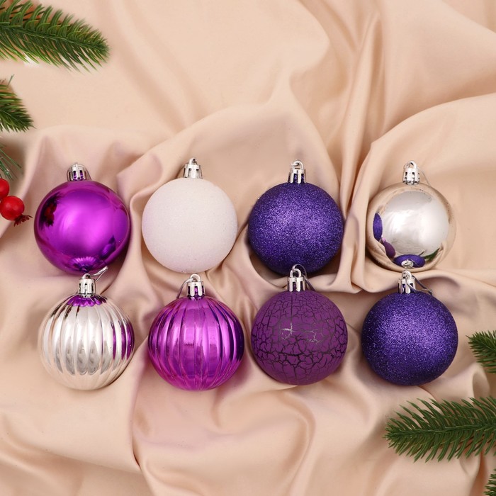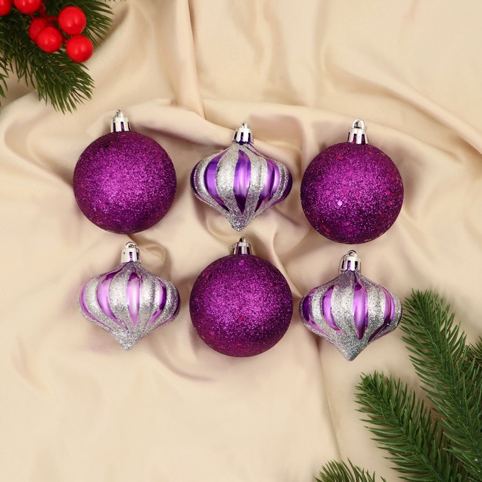 Ёлочные игрушки «Агнет», набор 6 шт., d=6 см, серебристо - фиолетовый
