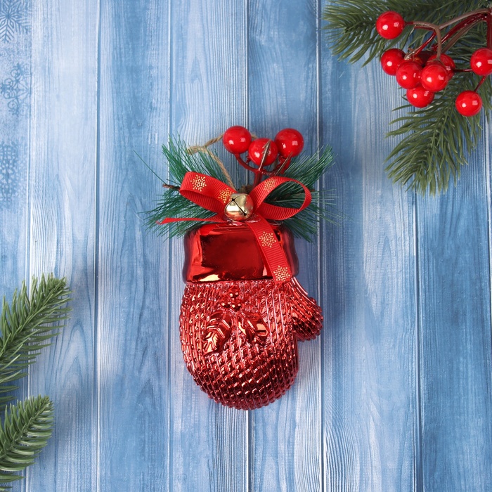 Ёлочная игрушка «Рукавичка с ягодками» 12×6.5 см, красный