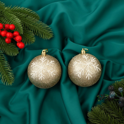 Ёлочные игрушки «Снежок», шары новогодние, d=8 см, набор 2 шт., бело-золотой