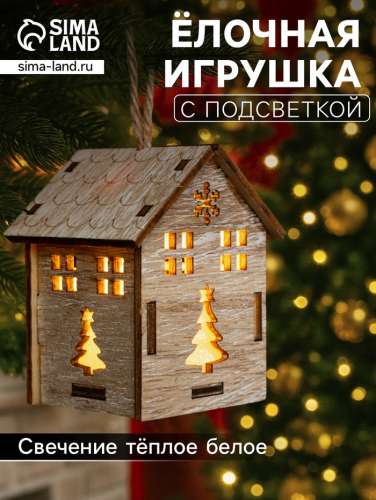 Ёлочная игрушка «Домик с ёлкой», 7×5×5 см, 1 LED, от батареек, свечение тёплое белое