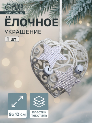 Ёлочная игрушка «Зимнее волшебство. Сердце кружевное со звёздами» пластик, 9×10 см, белый