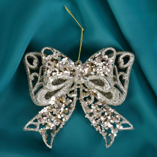 Ёлочная игрушка «Зимнее волшебство. Сияющая глазурь - бант» пластик, 11.5×10.5 см, золото