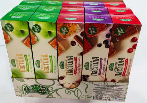 Пастила диетическая блок Ассорти (15шт по 100г: диета 6шт, клюква 3шт, смородина 3шт, вишня 3шт)
