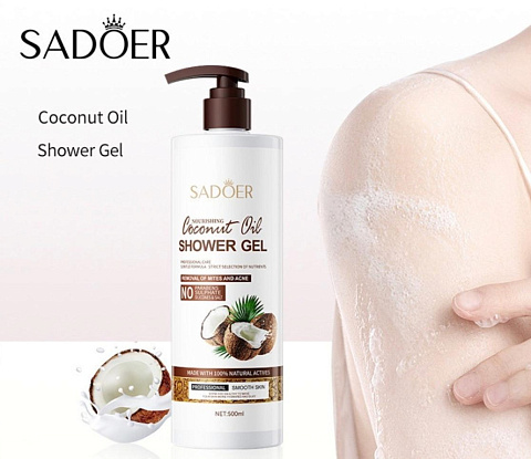 SADOER Гель для душа с экстрактом кокоса Coconut Oil Shower Gel 500мл