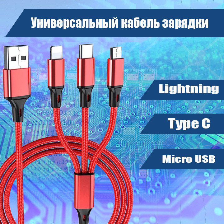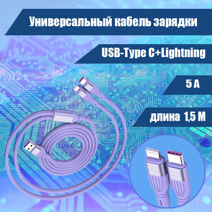 4506M 006 Универсальный кабель USB+Type C-Type C+Lightning, 1,5м