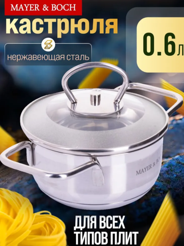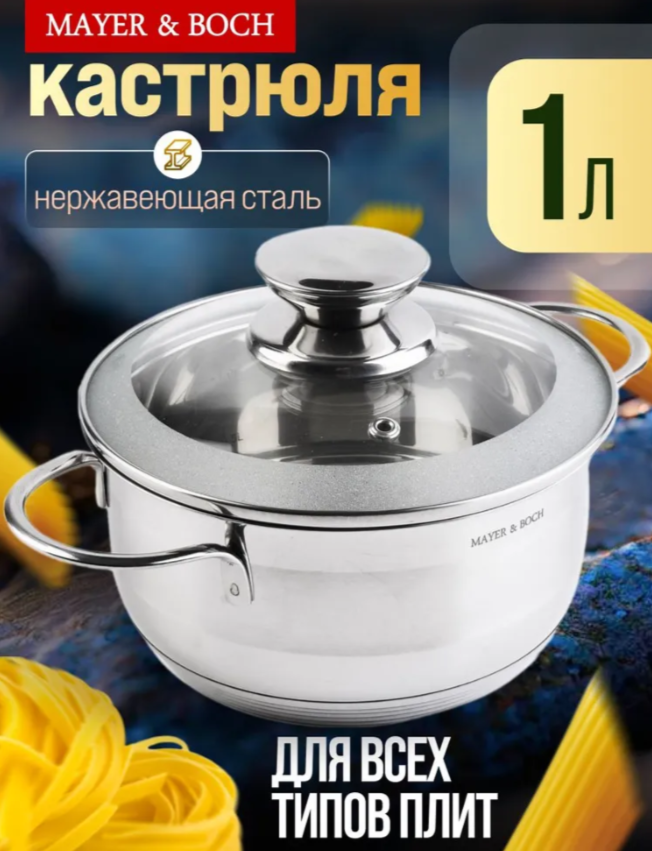 АКЦИЯ 792р. 1500р.25405 Кастрюля с крышкой 1 л нерж/сталь МВ (х8)