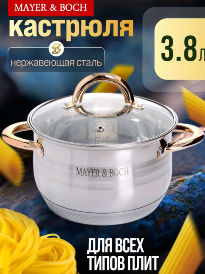 АКЦИЯ 879р. 1900р.30883 Кастрюля с крышкой 3,8л нерж/ст MB (х12)