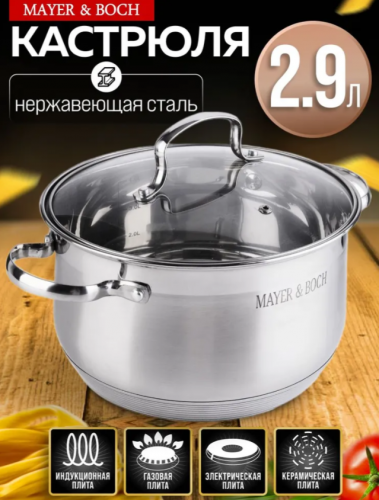 АКЦИЯ 982р. 2100р.30947 Кастрюля 2,9 л нерж с/кр MB (х12)