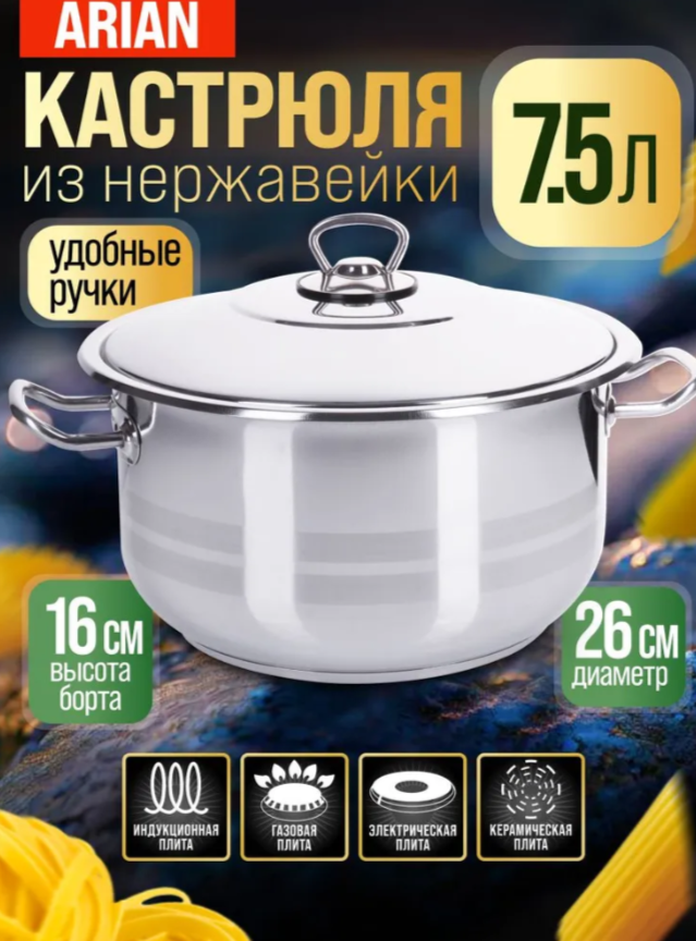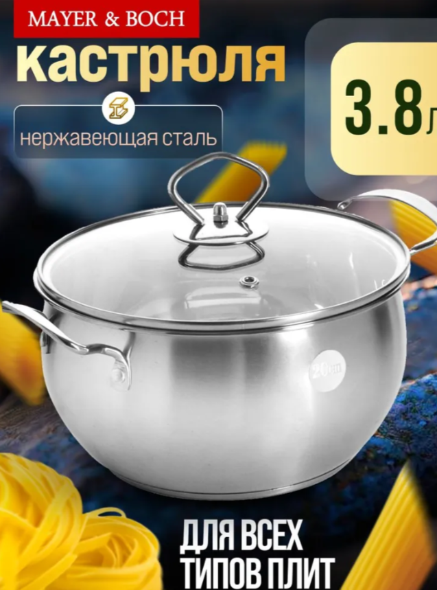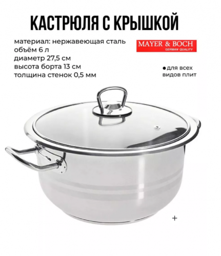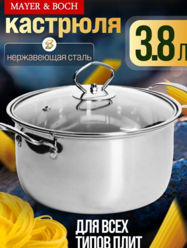 АКЦИЯ 1964р. 3200р.2170-1 Кастрюля со стеклянной крышкой из нержавеющей стали 7л (х4)