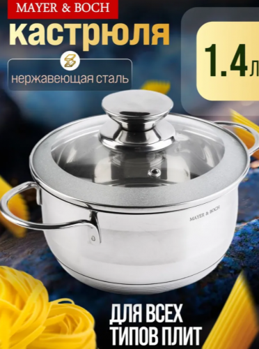 АКЦИЯ 870р. 1500р.25406 Кастрюля с крышкой 1,6 л нерж/сталь МВ (х8)
