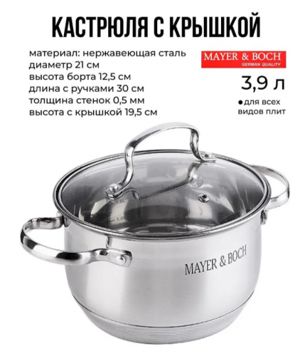 АКЦИЯ 1057р. 2100р.30948 Кастрюля 3,9 л нерж с/кр MB(х12)