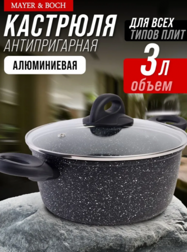 АКЦИЯ 1276р. 2500р.29817 Кастрюля литой алюминий 3,6 л 24см МВ (х8)