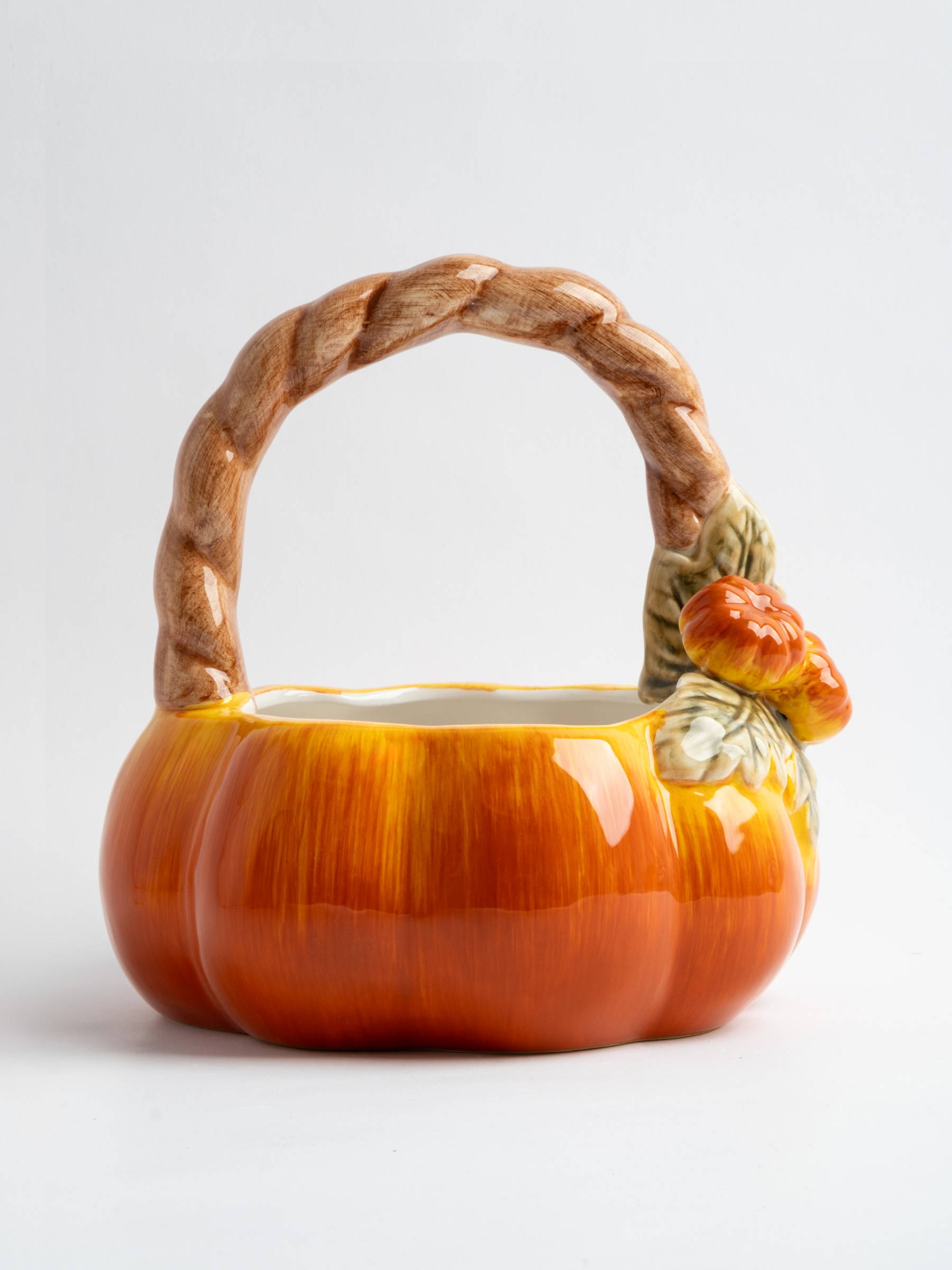 Конфетница, 21х21 см, с ручкой, керамика, оранжево-зеленая, Тыква, Bright pumpkin