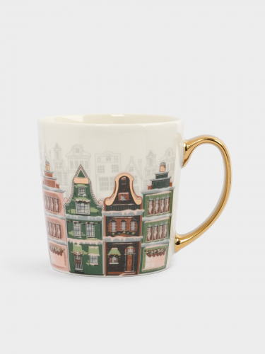 Кружка, 500 мл, фарфор N, бело-золотистая, Дома, Town