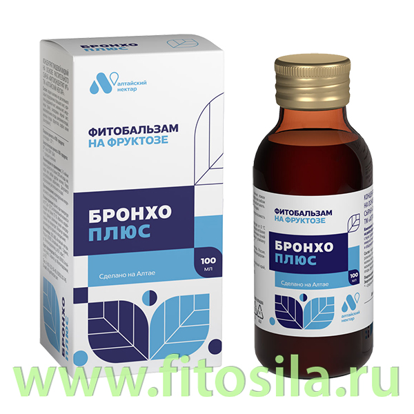 Фитобальзам на фруктозе "БРОНХО ПЛЮС", фл. 100 мл, в инд. уп. (новый дизайн) "Алтайский нектар"
