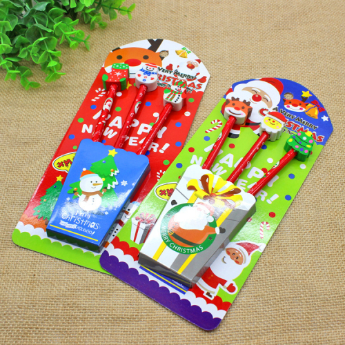 Набор простых карандашей Новогодних 3 шт с ластиками 9046294