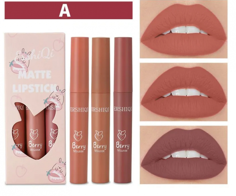 Матовая стойкая помада для губ, набор из 3шт , Тон А