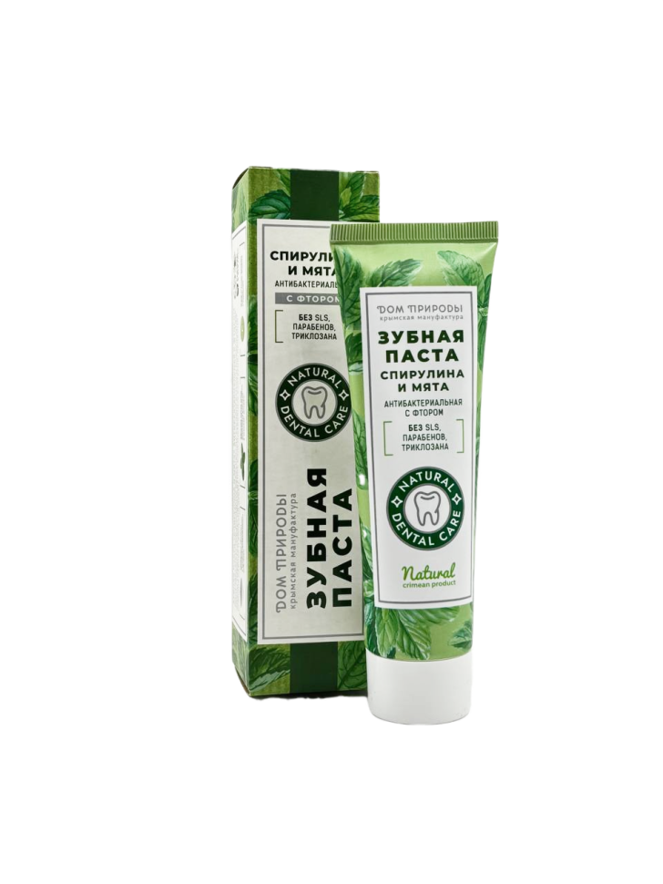 Зубная паста натуральная СО фтором антибактериальная Спирулина и мята СПР 70г