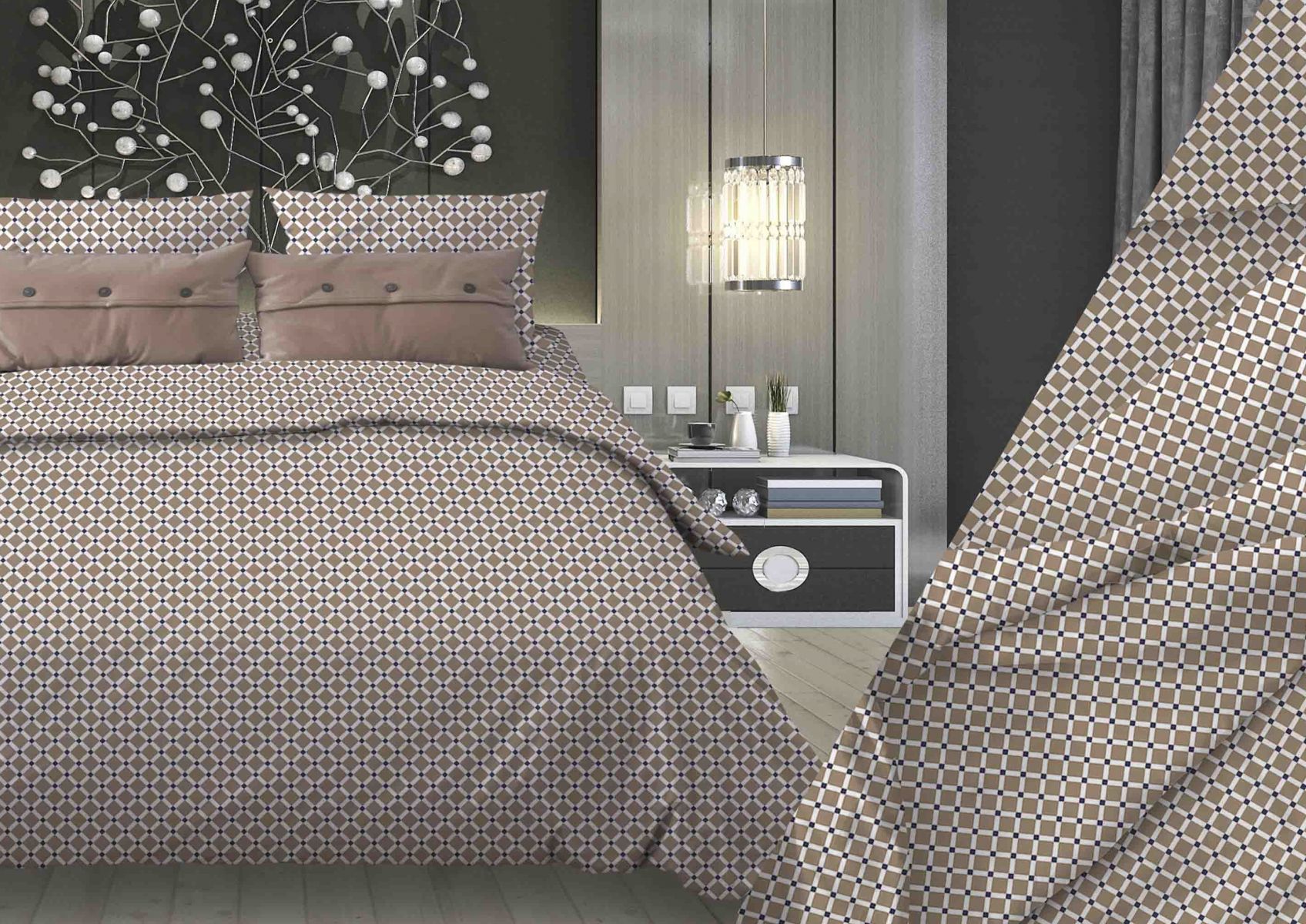 Ткань Симфония серо-бежевый Бязь 150 см