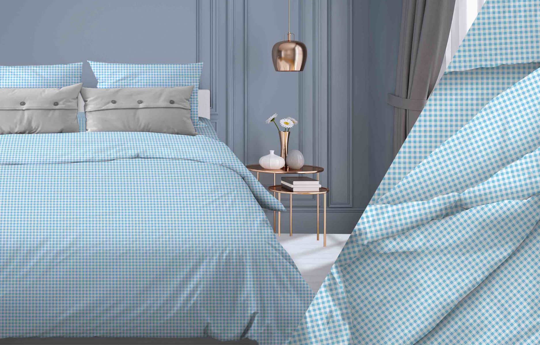 Ткань Клеточка бирюзовый Бязь 150 см