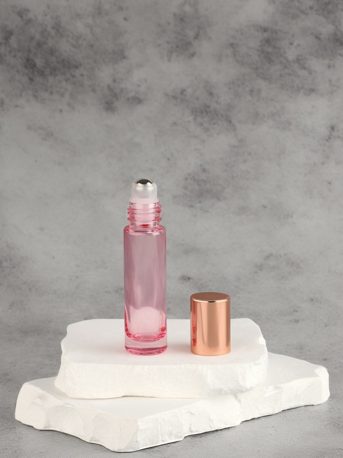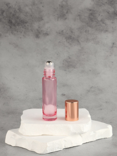 Флакон стеклянный для парфюма, с металлическим роликом, 10 мл, цвет розовый, розовое золото