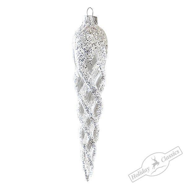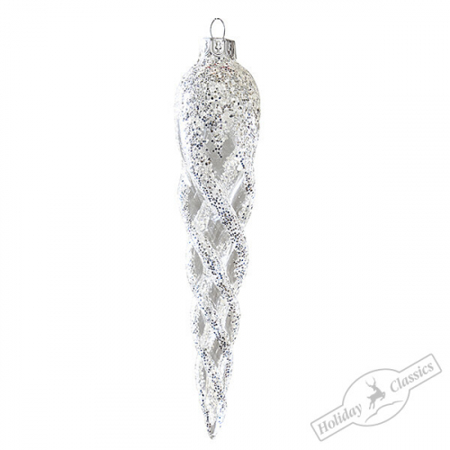 Сосулька "Серебряная спираль" (стекло) 2х2х23 см