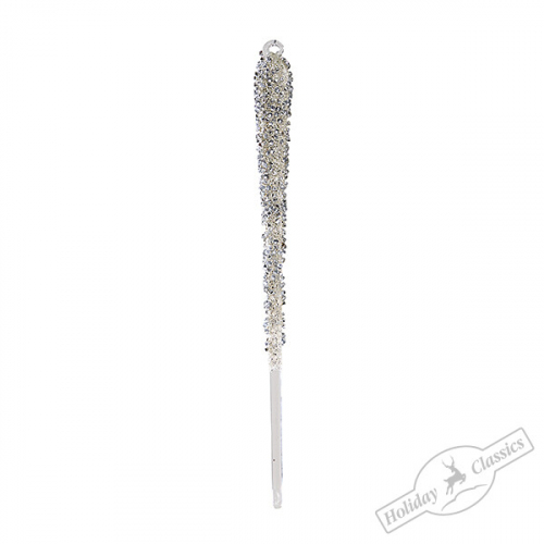 Сосулька серебряная с пайетками (стекло) 1,5х1,5х25 см