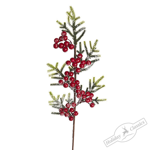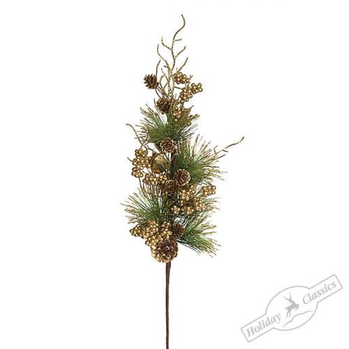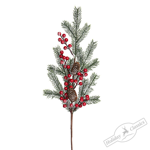 Ветка хвойная с шишками и красными ягодами, 65 см