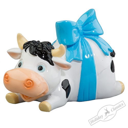 Копилка "Теленок-подарок с голубым бантом" 8х12,5х9,5 см