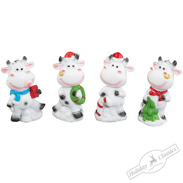 Сувенир "Веселый теленок" с рождественскими подарками асс. из 4-х, 4,5х3,5х7 см
