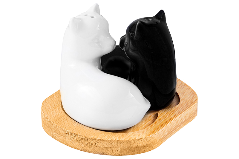 Набор д/специй 2 пр. 11*9*7 см "Кошки черно-белые" на деревянной подставке