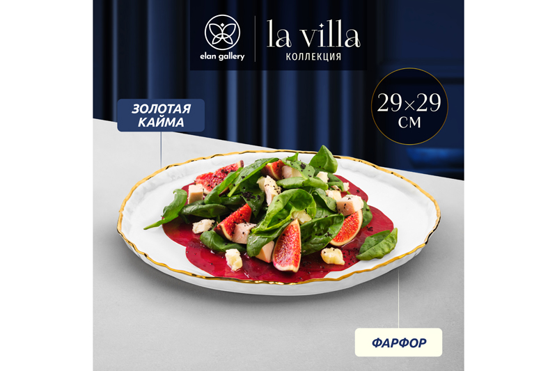 Блюдо сервировочное 29*29*2 см "La villa" золотой кант, фарфор