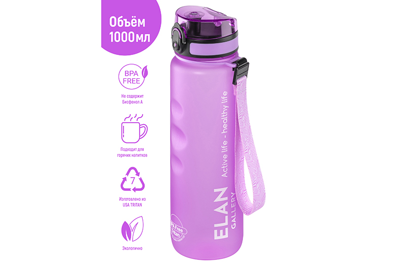 Бутылка для воды 1000 мл 7,8*7,8*28,5 см "Style Matte" с углублениями д/пальцев сиреневая