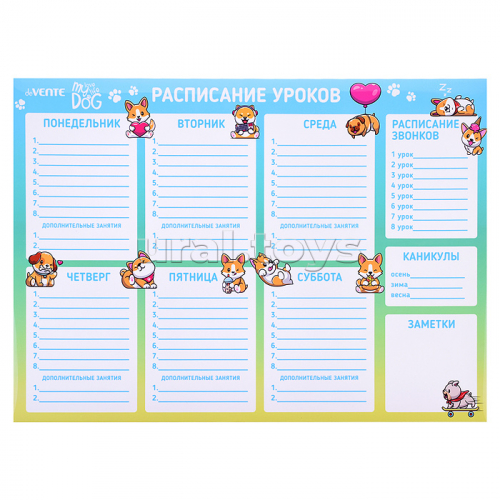 Расписание уроков магнитно-маркерное многоразовое "Собачьи истории" А3 (420x297 мм), ламинированное, цветная печать, пластиковый пакет